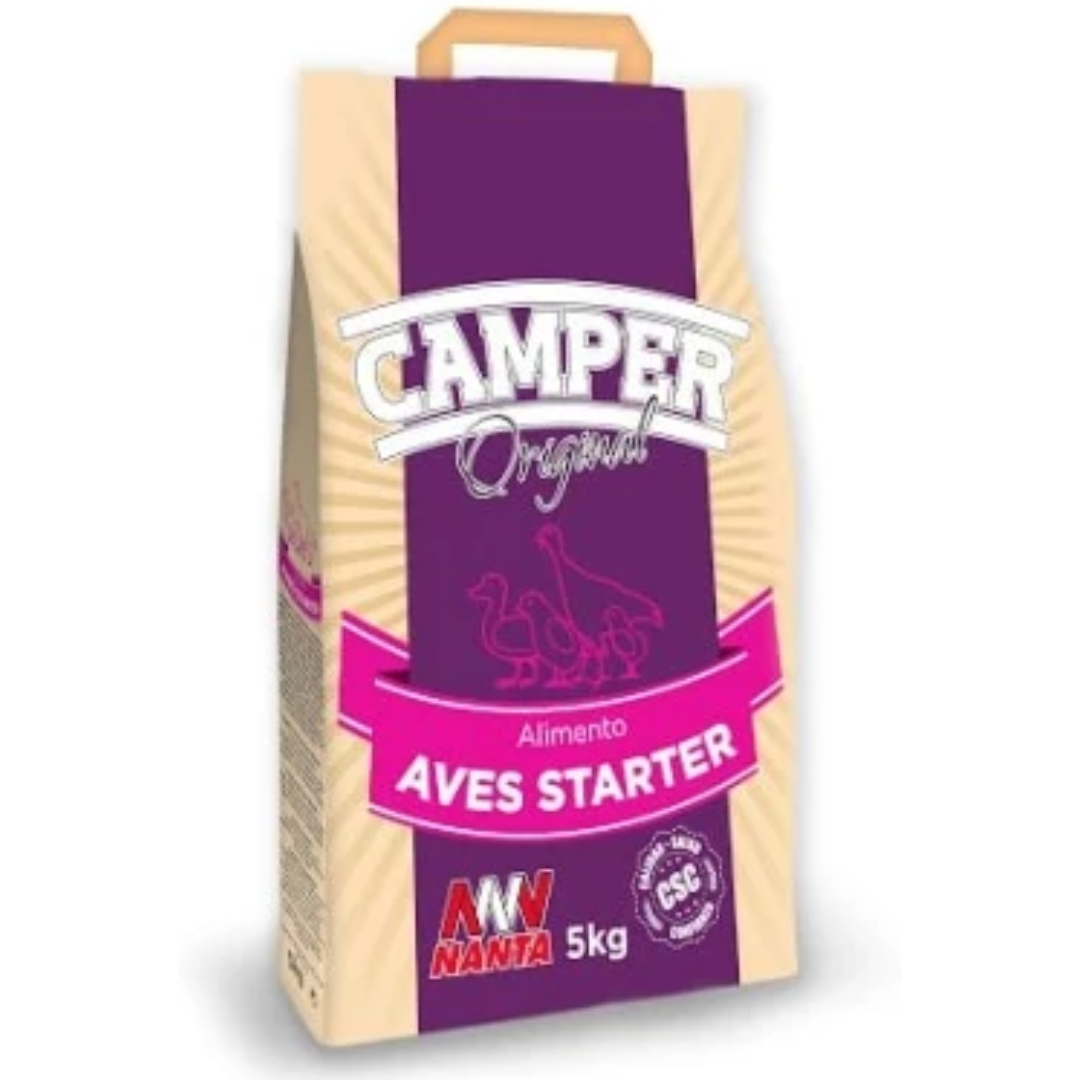 Camper Aves Starter es un alimento completo también para el arranque de otras aves, como pollitos, patitos, pavitos y perdigones, entre otras. Está elaborado en base a cereales seleccionados altamente digestible, con un cien por cien de aceites vegetales y un diseño nutricional exclusivo para el inicio a la alimentación de las aves. Contiene unos niveles muy elevados de aminoácidos, fundamentales y básicos en estos primeros días de vida.