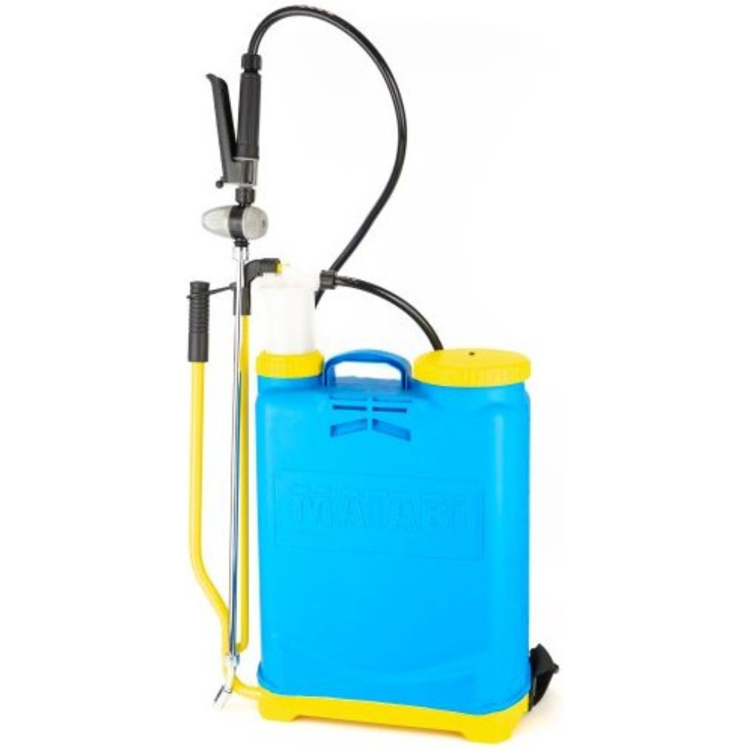 Pulverizador manual de espalda de 16 litros de capacidad con lanza y boquilla metálica. Adecuado para uso en extensiones superiores a 400 m².